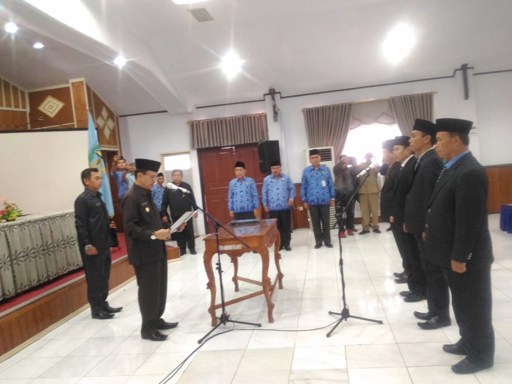 Pelantikan dan pengambilan sumpah jabatan Kepala Dinas Perindagkop Kabupaten Kerinci beserta Tiga Direktur PDAM Tirta Sakti Kerinci. dilaksanakan diruang aula Kantor Bupati Kerinci pada Senin (20/05).