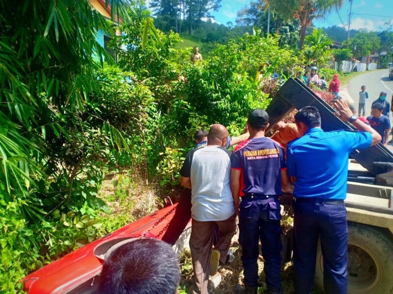 Teks fhoto : fhoto team rescue dinas pemadam kebakaran evakuasi mobil jatuh di kawasan perkantoran pemkot sungai penuh