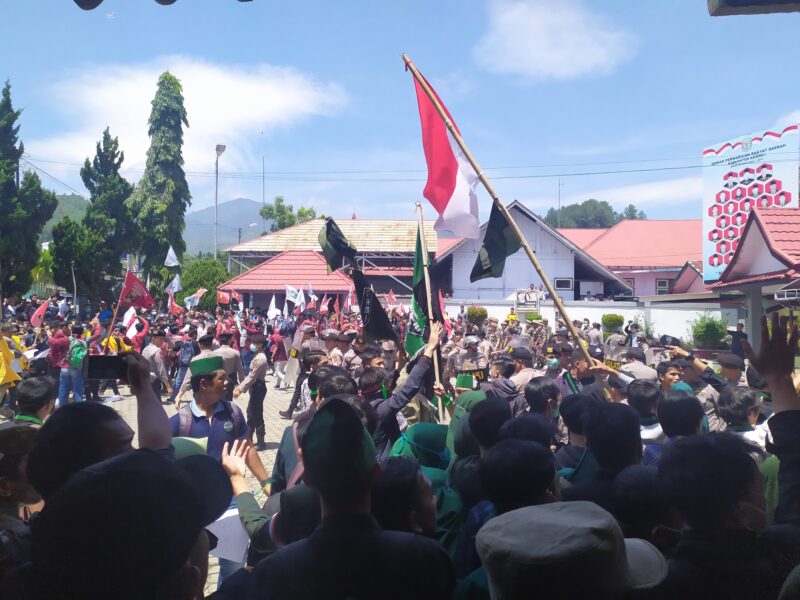 GLOBALJAMBI.COM, KERINCI – Ratusan mahasiswa dari berbagai Perguran Tinggi Negeri (PTN) dan Peguruan Tinggi Swasta (PTS) se Kabupaten Kerinci – Kota Sungai Penuh menggelar aksi unjuk rasa di halaman gedung DPRD Kabupaten Kerinci – Kota Sungai Penuh (26/09). Aksi tersebut dimulai sekitar pukul 10. 00 WIB.