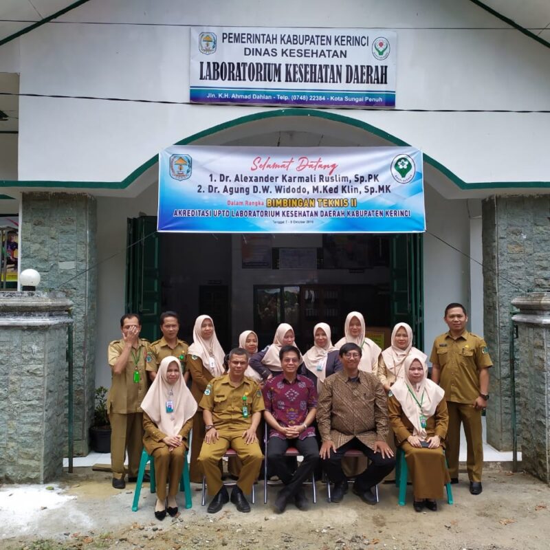 GLOBALJAMBI, KERINCI – Bimbingan Teknis II Persiapan Akreditasi Laboratorium Kesehatan Daerah Kabupaten Kerinci yang dilaksanakan selama 3 hari di UPTD Labkesda Kabupaten Kerinci dari tanggal 7–9 Oktober 2019 oleh Surveyor Komite Akreditasi Laboratorium Kesehatan (KALK) Kementerian Kesehatan RI yaitu dr. Alexander karmali ruslim, SpPK. dan dr.Agung D.W. Widodo, M Kedklin, SpMK.