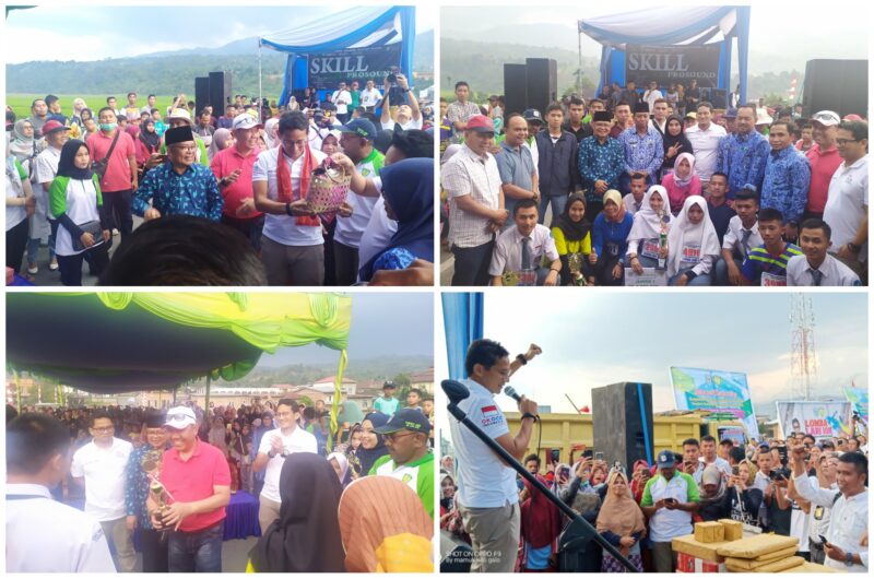 GLOBALJAMBI.COM, KERINCI – Bang Sandiaga Uno disambut antusias ribuan warga Kerinci saat menyerahkan hadiah juara Lomba Lari 10 K yang di selenggarakan oleh Persatuan Atletik Seluruh Indonesia (PASI) Kerinci (18/11).