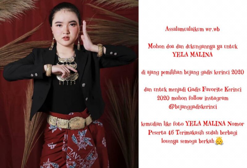dan untuk menjadi Gadis Favorite Kerinci 2020 mohon follow instagram @bujanggadiskerinci