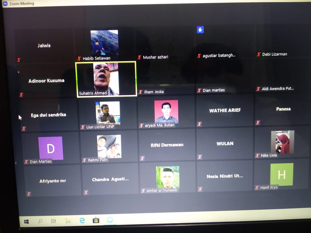 GLOBALJAMBI. COM – Diskusi yang diadakan oleh Ikatan Mahasiswa Rawang – Padang (IMR-P) adakan diskusi online pertama, dengan tema revitalisasi nilai-nilai kebudayaan Hamparan Rawang