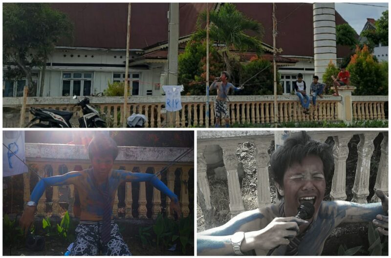 Bagaimana tidak, selain menyampaikan keresahan nya melalui puisi, pemuda ini juga mengecat tubuh nya dengan warna biru tua kombinasi merah, yang melambangkan bentuk protes kepada para penguasa yang terkesan tidak serius dalam menangani kondisi krisis yang sedang dialami oleh hampir sebagian besar masyarakat.