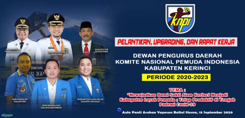 Pelantikan tersebut mengangkat tema “Mewujudkan Bumi Sakti Alam Kerinci Menjadi Kabupaten Layaknya Pemuda ; Tetap Produktif Ditengah Pademi Covid-19