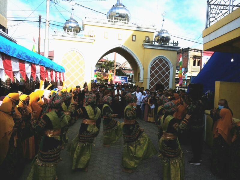 Kedatangan Syafril langsung diiringi dengan lantunan Sholawat oleh masyarakat. Lalu Syafril diberikan sorban berwarna putih.
