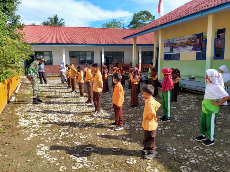 GLOBALJAMBI.COM, Kerinci- Prada Budi anggota Satgas TMMD ke-109 Kodim 0417/Kerinci anggota Yonif Raider 142/KJ hadir silaturahmi dengan siswa dan majlis Guru di Sekolah Dasar Negeri Nomor :216/III/Sungai Langkap Kec. koto Siulak Mukai Kab. Kerinci. Kamis (24/09/20)