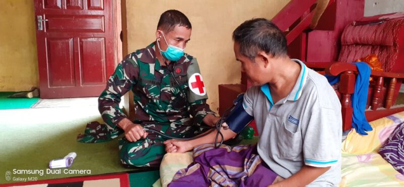 KERINCI, GJ – Suasana yang penuh kehangatan dan keakraban nampak diwajah warga dengan anggota kesehatan Satgas TMMD Kodim 0417/Kerinci berbincang dan bersenda gurau sambil disela-sela memeriksa kesehatan warga di rumah yang bertempat di Desa Sungai Langkap Kecamatan Siulak Mukai Kabupaten Kerinci, Senin (05/10/2020).
