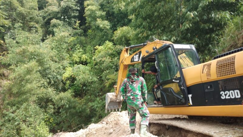 Serda Fernando terlihat dilokasi sedang mengawasi dan mengarahkan alat berat yang sedang kerja untuk menyelesaikan target pekerjaan agar jalan yang baru dibuka tersebut dapat selesai tepat pada waktu yang telah ditentukan.