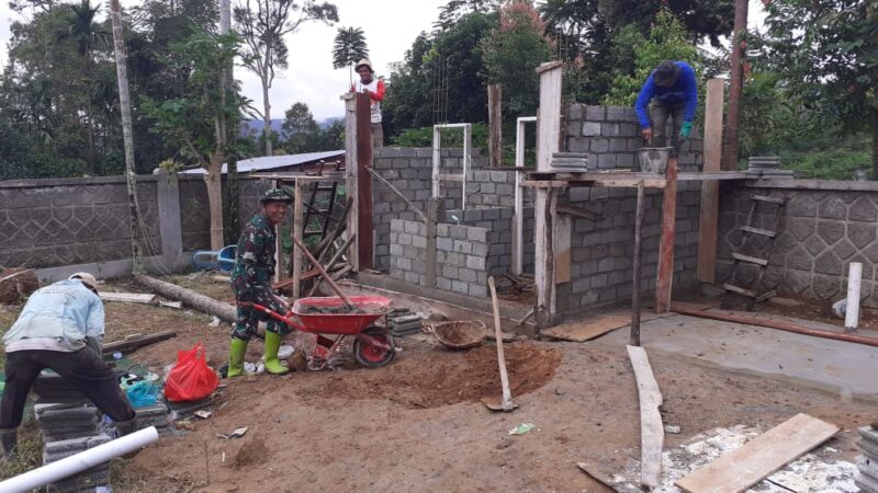 kerinci -Satgas TMMD ke-109 Kodim 0417/Kerinci Pratu Nanang membantu pembuatan Mandi Cuci Kakus (MCK) di saping lapangan bola kaki desa Sungai langkap Kecamatan siulak mukai kabupaten Kerinci, Jumat(09/10/2020)
