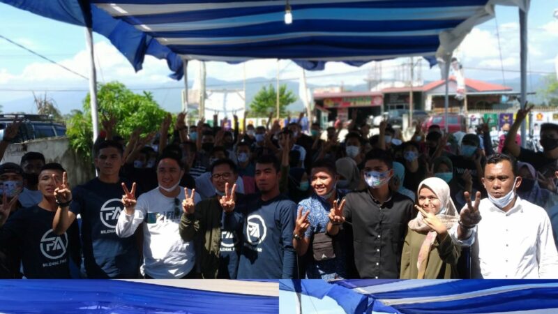 Setelah melakukan pernyataan sikap dari millenial enam desa Kec. Koto Baru, Calon walikota nomor urut dua, Fikar Azami langsung mengukuhkan para millenial Koto Baru ini.