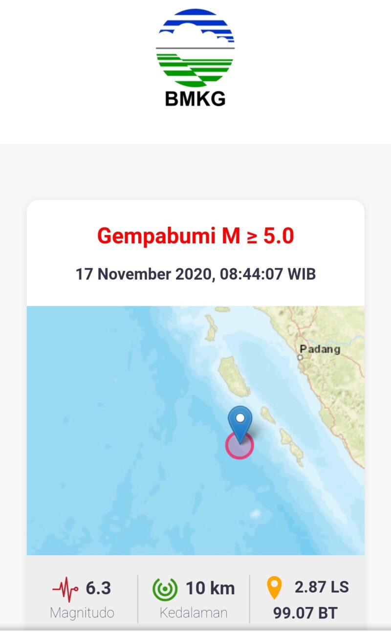 “Tidak berpotensi tsunami, saran dari BMKG hati-hati terhadap gempa bumi susulan yang mungkin terjadi” tulis Badan Meteorologi, Klimatologi, dan Geofisika (BMKG) dalam situs resminya,  (17/11/2020).