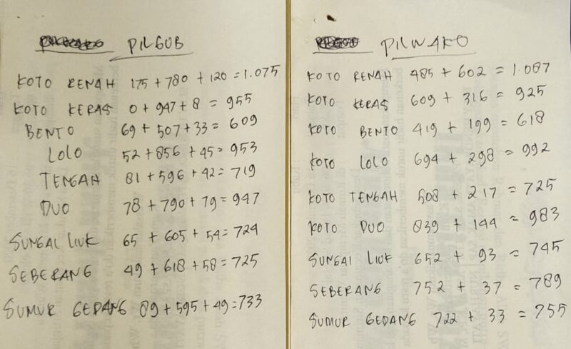 “Ini yang makin tampak janggal di Kecamatan Koto Baru. Masak penghitungan di Pilwako sudah selesai, malah di Pilgub belum selesai. Ada apa? Makin menguatkan kecurigaan kita,” ujar Musri Nauli.