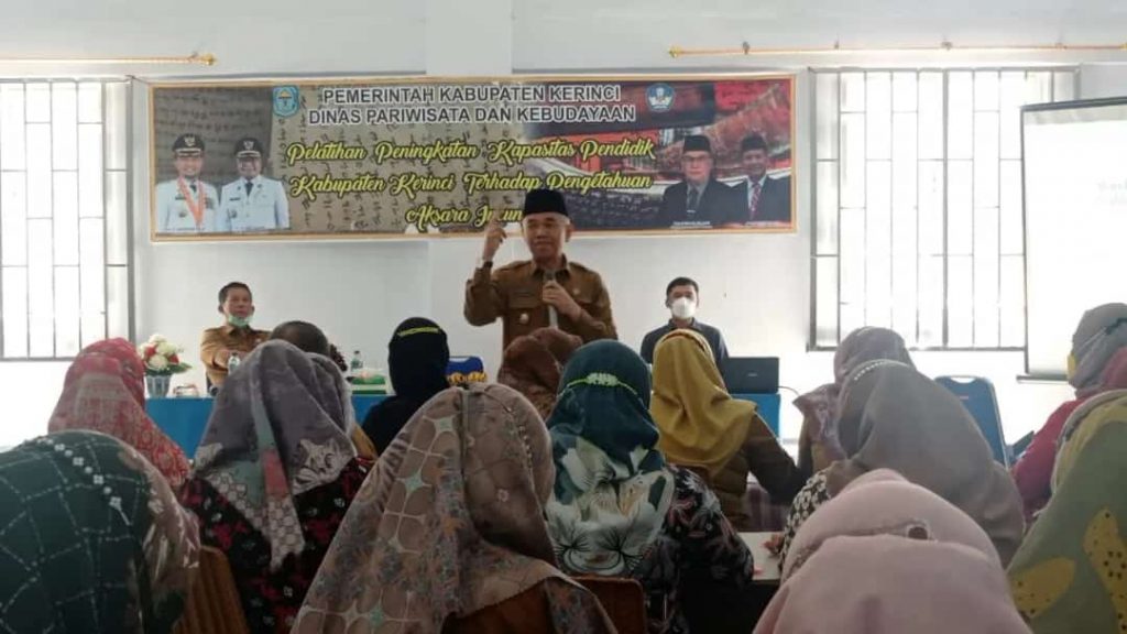 GlobalJambi, KERINCI – Pemerintah Kabupaten Kerinci melalui Dinas Pariwisata dan Kebudayaan Kerinci, pada Selasa (29/03/2022) menggelar kegiatan peningkatan kapasitas pendidik Kabupaten Kerinci terhadap pengetahuan aksara incung, yang bertempat di Museum Kerinci, Desa Sanggaran Agung, Kecamatan Danau Kerinci.