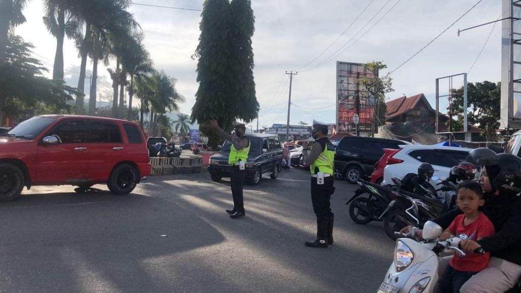 Pantauan dilapangan, terlihat beberapa anggota Sat Lantas Polres Kerinci siaga di setiap simpang yang sering terjadi kemacetan terutama dipusat perbelanjaan di Sungai Penuh di Pasar Mambo.