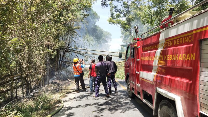 GlobalJambi, KERINCI – Kebakaran lahan yakni berupa tanaman Bambu terjadi di pinggir Jalan di Desa Sebukar, Kecamatan Tanah Cogok, Kabupaten Kerinci, akibatnya pohon Bambu roboh hingga menutupi jalan.