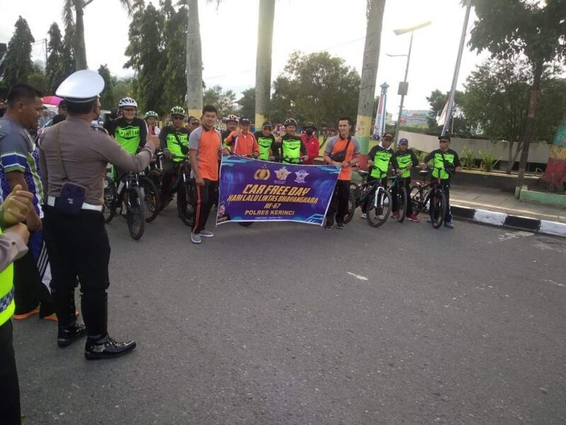 KERINCI, GlobalJambi – Memperingati Hari Ulang Tahun (HUT) Lalu Lintas Bhayangkara Ke-67, Satuan Lalu Lintas (Satlantas) Polres Kerinci menggelar Car Free Day di depan Lapangan Merdeka Kota Sungai Penuh, pada Minggu (18/9/2022).