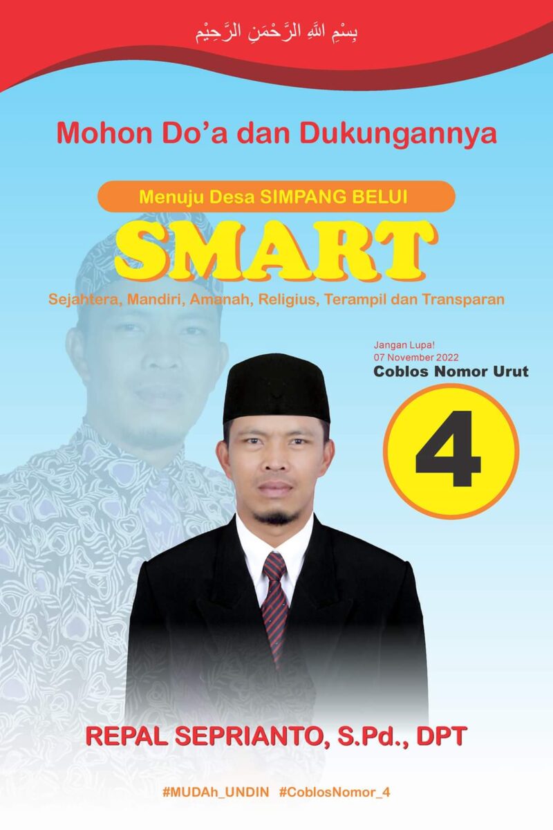 Hal tersebut setelah Repal dengan membawa Tagline “Mudah Undin”, berhasil meraih suara terbanyak yakni dengan perolehan 249 suara pada Pilkades serentak Tahun 2022 Kabupaten Kerinci khususnya Desa Simpang Belui yang dilaksanakan pada Senin (07/11/2022).
