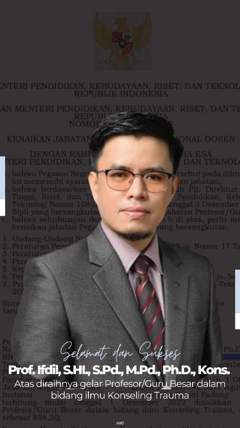 KERINCI – Prof. Ifdil, S.H.I., S.Pd., M.Pd., Ph.D., Kons, terhitung 01 Desember 2022 resmi menjadi Profesor pertama Konseling Trauma di Indonesia. Selain itu, ia juga menjadi Profesor termuda bidang Bimbingan dan Konseling di Indonesia.