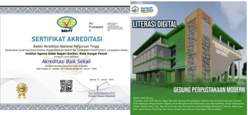 KERINCI, GlobalJambi – Alhamdulillah, Institut Agama Islam Negeri (IAIN) Kerinci pada tanggal 31 Januari 2023 resmi menyandang Peringkat Akreditasi Baik Sekali dari Badan Akreditasi Nasional Perguruan Tinggi (BAN-PT).