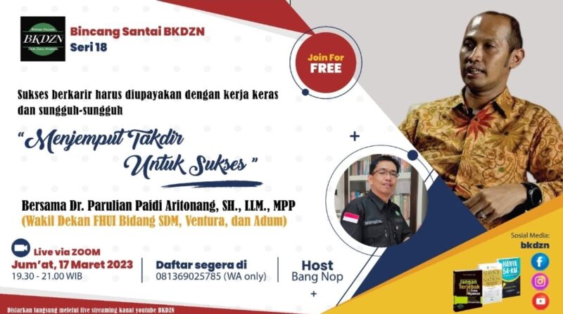 Pada bincang santai kali ini, BKDZN menghadirkan nara sumber yang sehari-hari bergelut di bidang hukum. Ia adalah Dr. Parulian Paidi Aritonang, S.H., LLM., MPP, Wakil Dekan Fakultas Hukum Universitas Indonesia.