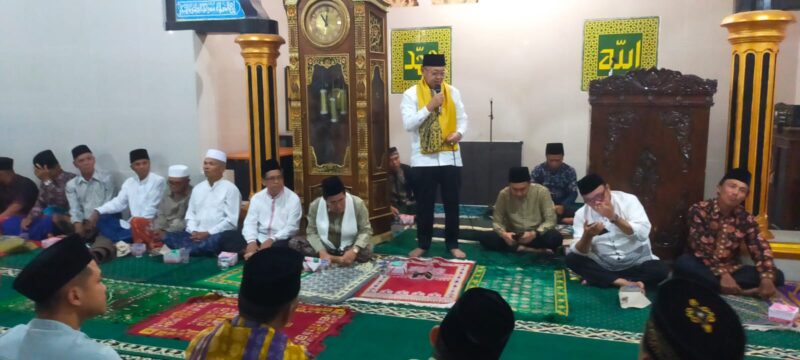 Usai mengikuti sholat isya dan tarawih berjamaah di Masjid Taqwa Desa Baru Debai, acara kemudian dipandu oleh Ketua DPD Golkar Sungaipenuh, Fikar Azami.