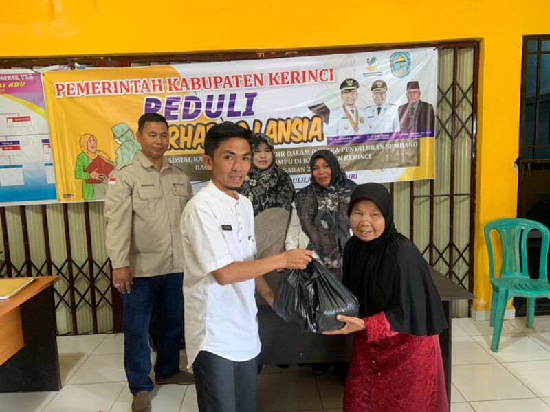 KERINCI, GlobalJambi – Pemerintah Kabupaten Kerinci melalui Dinas Sosial (Dinsos) Kabupaten Kerinci lakukan Louncing secara simbolis pembagian sembako Peduli terhadap Lansia tahun 2023, yang bertempat di Gedung Desa Baru Sungai Abu pada Rabu (12/04/2023) pukul 09.30 WIB.