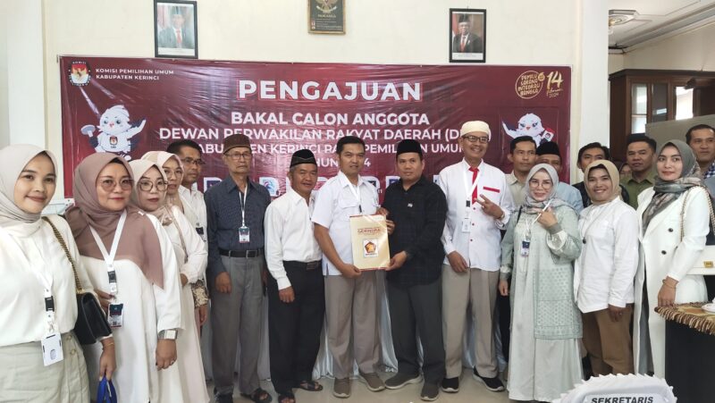 Untuk diketahui, Berkas Bacaleg DPC Partai Gerindra diserahkan langsung Ketua DPC Partai Gerindra, Irwandri, ke Kantor KPU Kerinci pada Minggu (14/05/2023) sekira pukul 14.00 Wib, yang diterima langsung Ketua KPU Kerinci, Kumaini, yang didampingi komisioner KPU. Juga turut hadir, Bawaslu Kerinci serta dari pihak Kepolisian.