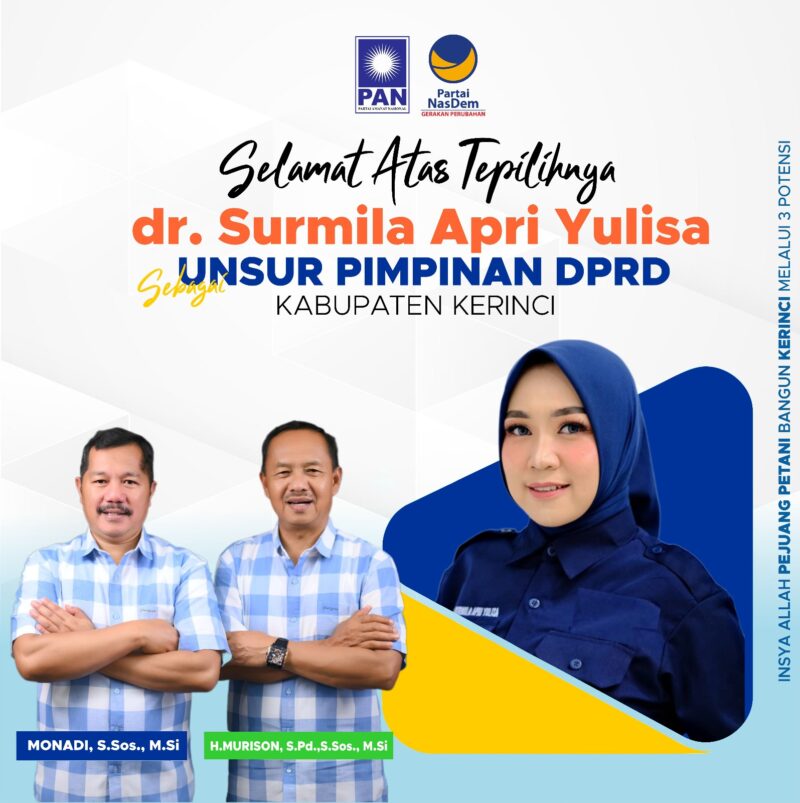 Murison menambahkan, dengan pengalaman dan dedikasinya, dr. Surmila diharapkan dapat memperjuangkan aspirasi rakyat dan mendorong program-program yang bermanfaat bagi kemajuan Kabupaten Kerinci.