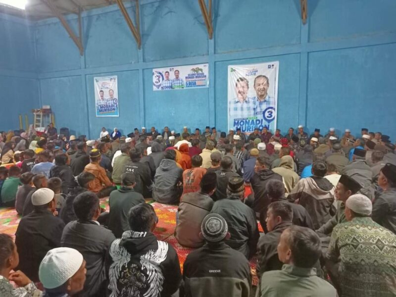 Gedung serbaguna tersebut dipenuhi massa yang datang dari berbagai lapisan masyarakat, termasuk emak-emak, pemuda, dan tokoh masyarakat (tomas) yang menunjukkan dukungan penuh terhadap pasangan Monadi – Murison.