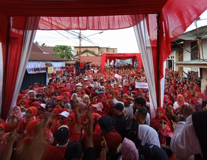 Larut dalam kegembiraan…..Saat Ahmadi Zubir melantunkan lagu-lagu kesayangannya, ribuan massa dan simpatisan larut dalam kegembiraan, seakan-akan terhipnotis. Tidak terkecuali, kaum ibu-ibu dan bapak-bapak ikut berbaur dan berjoget bersama. (*)