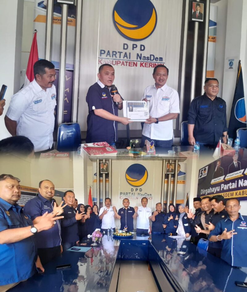 GLOBALJAMBI.COM, KERINCI – Seiring dengan semakin dekatnya pemilihan Bupati dan Wakil Bupati Kerinci yang akan digelar pada 27 November 2024. Murison, salah satu kandidat calon wakil bupati yang berpasangan dengan Calon Bupati Monadi, secara resmi mengumumkan bergabung dengan Partai Nasdem Kerinci yang tak lain merupakan partai pengusung dirinya pada Pilkada Kerinci 2024 ini.