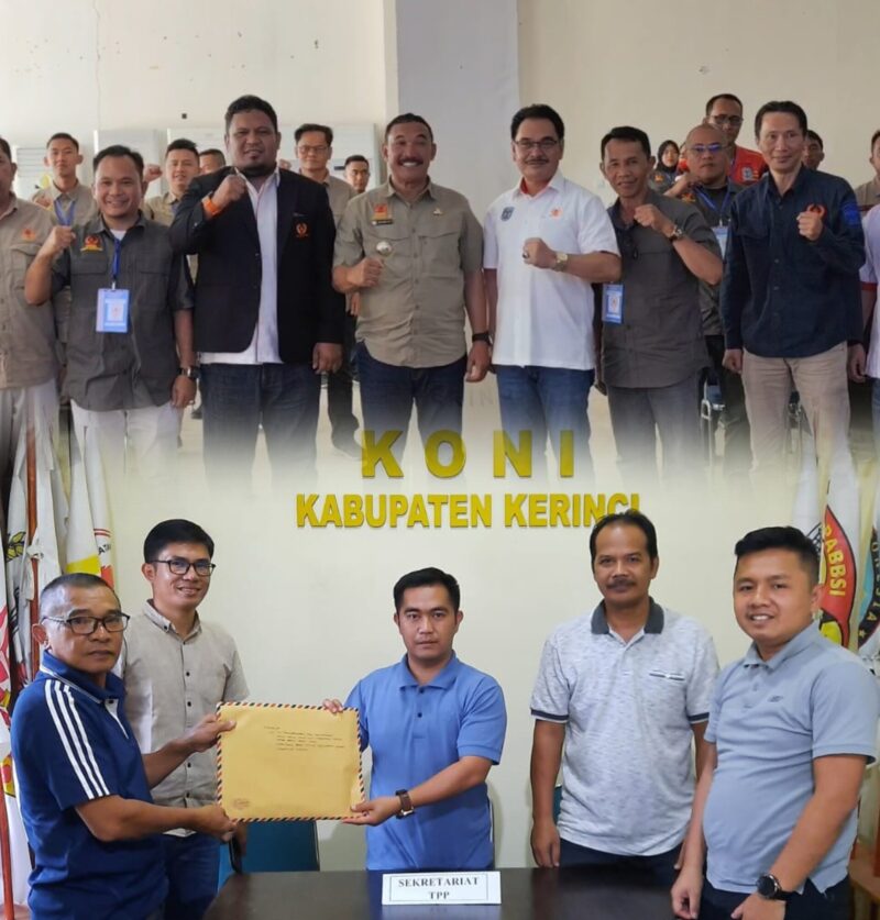 GLOBALJAMBI.COM, Kerinci – Drs, Nafrizal resmi terpilih sebagai Ketua Komite Olahraga Nasional Indonesia (KONI) Kabupaten Kerinci periode 2025 – 2029, melalui proses aklamasi dalam Musyawarah Olahraga Kabupaten (Musorkab) yang digelar di aula perkantoran Bupati Kerinci pada Minggu (29/12).