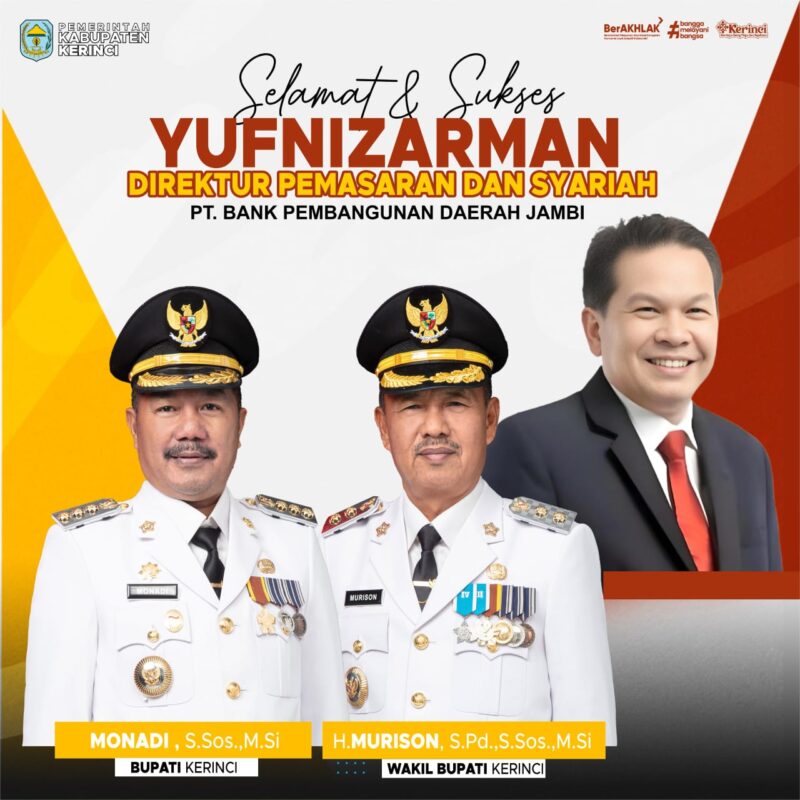 “Kami mengucapkan selamat dan sukses kepada Bapak Yufnizarman atas jabatan barunya. Semoga dapat membawa inovasi dan kemajuan bagi Bank Jambi, serta memberikan manfaat bagi masyarakat luas, khususnya di Kerinci,” ujar Bupati.