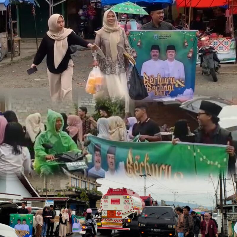 GLOBALJAMBI.COM, KERINCI – Rintik hujan tak surutkan langkah para Milenial Monadi-Murison yang dengan penuh semangat membagikan seribu takjil di Pasar Semurup, Rabu (19/5/2025) petang.