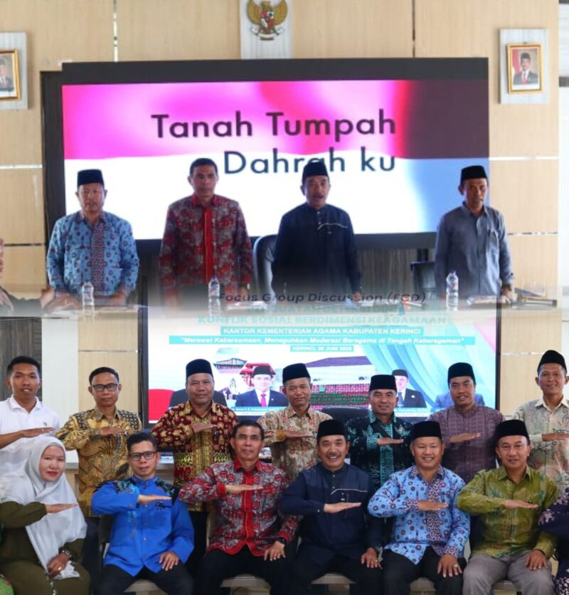 GLOBALJAMBI.CO.ID, Kerinci — Kantor Kementerian Agama Kabupaten Kerinci menggelar kegiatan Focus Group Discussion (FGD), penguatan deteksi dini konflik sosial berdimensi keagamaan dengan tema “Merawat Kebersamaan, Meneguhkan Moderasi beragama ditengah Keberagaman”, pada hari Jum’at (20/06/2025).