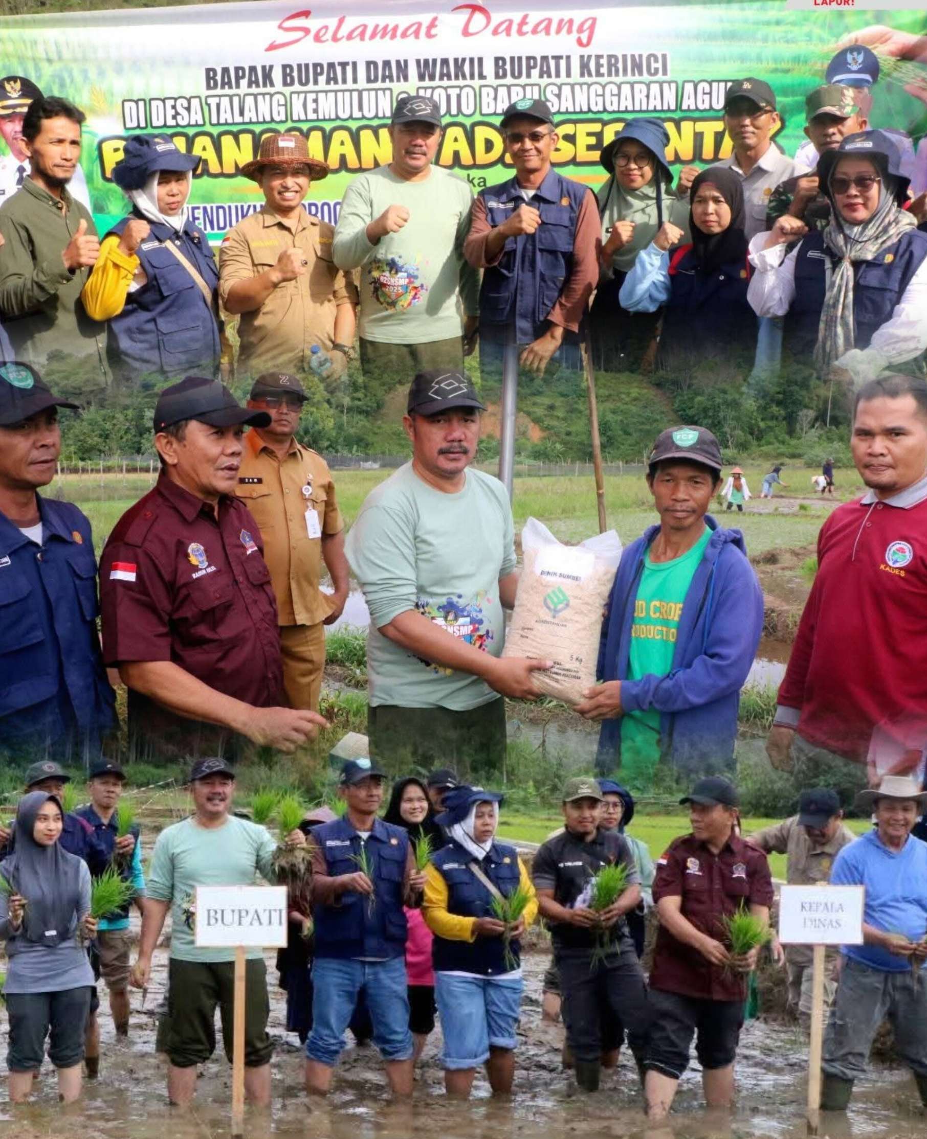P – Bupati Kerinci Monadi Tanam Padi Bareng Petani di Talang Kemulun