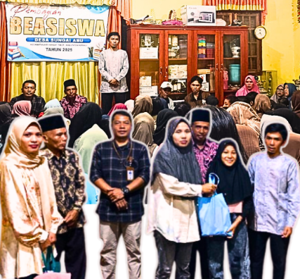 Sebanyak 112 anak dari jenjang TK, SD, SMP hingga SMA menerima bantuan alat tulis dan beasiswa secara langsung dari Kepala Desa Sungai Abu, Antoni Rozi. Mereka datang dengan pakaian terbaik yang dimiliki, bersama orang tua yang tak henti mengucap syukur.
