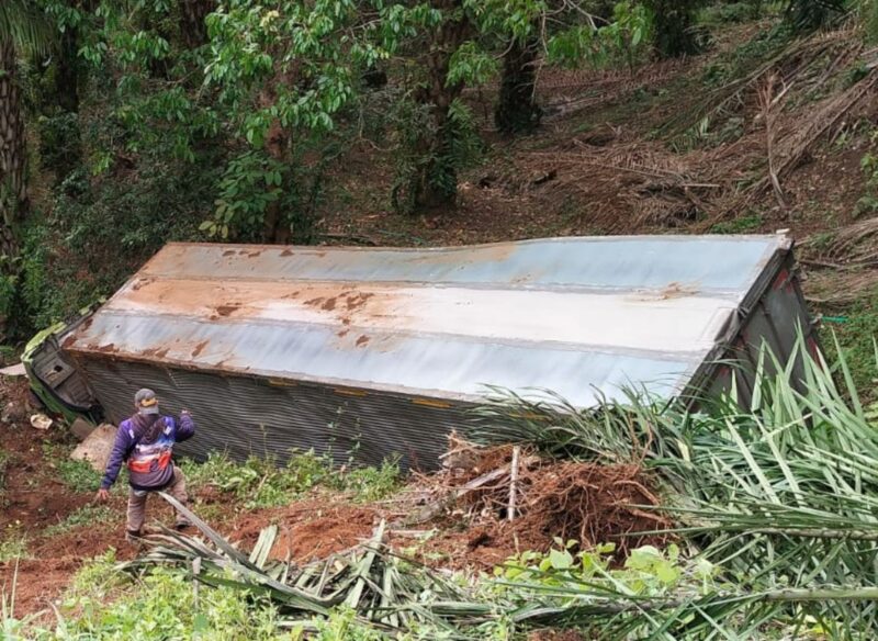 “truk tersebut melaju dari arah Sungai Penuh menuju Lampung dengan kecepatan sedang. Namun, saat melintasi jalan menurun di Desa Bedeng 12, kendaraan mengalami gangguan sistem pengereman (rem blong) dan kehilangan kendali hingga akhirnya terperosok ke jurang dengan kedalaman sekitar 10 meter,” ujar Kasat.