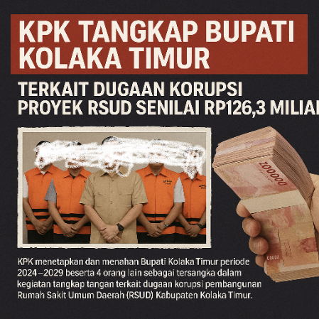 Jakarta – Komisi Pemberantasan Korupsi (KPK) menetapkan dan menahan Bupati Kolaka Timur periode 2024–2029, ABZ, bersama empat orang lainnya dalam operasi tangkap tangan (OTT) terkait dugaan tindak pidana korupsi pembangunan Rumah Sakit Umum Daerah (RSUD) Kabupaten Kolaka Timur, Sulawesi Tenggara.