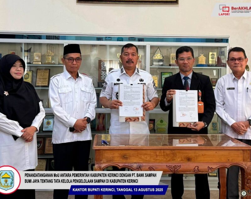 KERINCI – Sebagai wujud komitmen serius dalam mengatasi persoalan sampah sekaligus meningkatkan kualitas sumber daya manusia (SDM), Bupati Kerinci menandatangani dua Nota Kesepahaman (MoU) penting pada Rabu, 13 Agustus 2025.