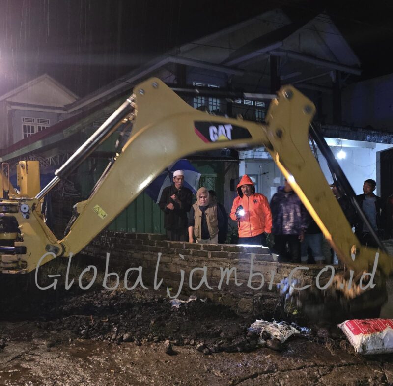 GLOBALJAMBI. CO. ID, KERINCI – Upaya cepat dilakukan Pemerintah Kabupaten Kerinci dalam menangani banjir yang melanda wilayah Kayu Aro, Jumat (26/9/2025). Dinas Pekerjaan Umum dan Penataan Ruang (PUPR) Kerinci menurunkan alat berat untuk membersihkan saluran air yang tersumbat di lokasi banjir.