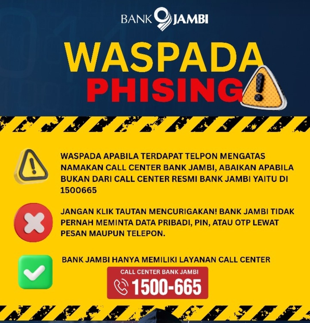 “Apabila ada pihak yang menghubungi dan mengatasnamakan call center Bank Jambi namun bukan dari nomor resmi 1500-665, segera abaikan dan jangan berikan data pribadi seperti PIN, password, ataupun kode OTP,” tulis pihak Bank Jambi dalam keterangannya.