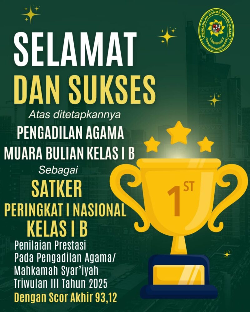 MUARA BULIAN – Prestasi luar biasa ditorehkan oleh Pengadilan Agama Muara Bulian kelas I B di Triwulan III tahun 2025.