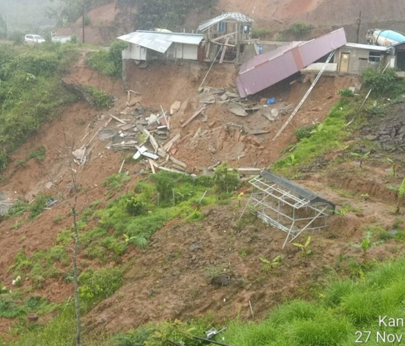“Pada saat kejadian, hujan turun dengan intensitas tinggi. Tiba-tiba tanah di tebing belakang warung bergerak dan menyeret bangunan dapurnya,” ujar saksi.