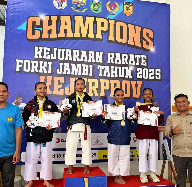 GLOBALJAMBI.CO.ID, JAMBI – Kontingen Federasi Olahraga Karate-Do Indonesia (FORKI) Kabupaten Kerinci kembali menorehkan prestasi membanggakan pada ajang Kejuaraan Provinsi (Kejurprov) Karate FORKI Jambi Tahun 2025. Dalam kejuaraan bergengsi tingkat provinsi tersebut, para atlet FORKI Kerinci berhasil mengoleksi total 18 medali, terdiri dari 2 medali emas, 4 medali perak, dan 12 medali perunggu.