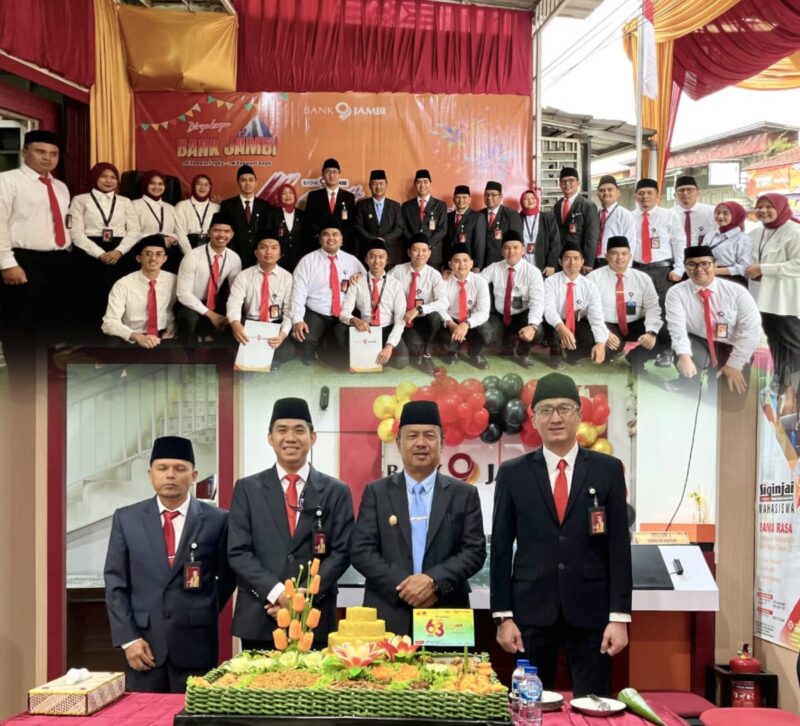 Peringatan HUT ke-63 Bank Jambi tahun ini mengusung tema “Bangga Melayani”, sebagai wujud komitmen Bank Jambi untuk terus menghadirkan layanan perbankan terbaik serta memperkuat perannya sebagai mitra strategis pemerintah daerah dalam mewujudkan pembangunan dan kesejahteraan masyarakat.(Adi)