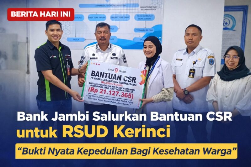 Bantuan tersebut diserahkan langsung oleh Wakil Pimpinan Bank Jambi Cabang Kerinci, Vander Basten, dan diterima secara simbolis oleh Bupati Kerinci, Monadi, bersama jajaran manajemen rumah sakit, dalam suasana penuh keakraban dan komitmen pelayanan, di lingkungan RSUD Kerinci.