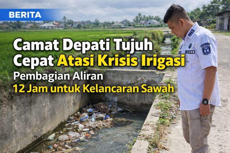 GLOBALJAMBI.CO.ID – Keluhan petani terkait berkurangnya debit air Irigasi Kasigi di Kecamatan Depati Tujuh akhirnya mendapat perhatian serius dari pemerintah kecamatan. Camat Depati Tujuh, Indra Hermawan, bergerak cepat turun langsung ke lapangan menyikapi persoalan penyekatan aliran air yang menyebabkan sejumlah sawah kekurangan pasokan.