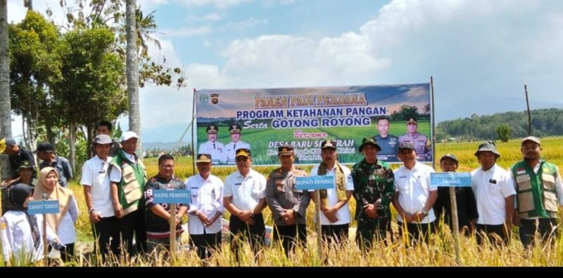 Sejak pagi, petani, perangkat desa, hingga aparat TNI-Polri tampak turun langsung ke sawah. Suasana kebersamaan terasa kental. Panen perdana ini bukan sekadar memotong padi, tetapi menjadi simbol kebangkitan sektor pertanian desa sekaligus langkah nyata memperkuat kemandirian pangan daerah.